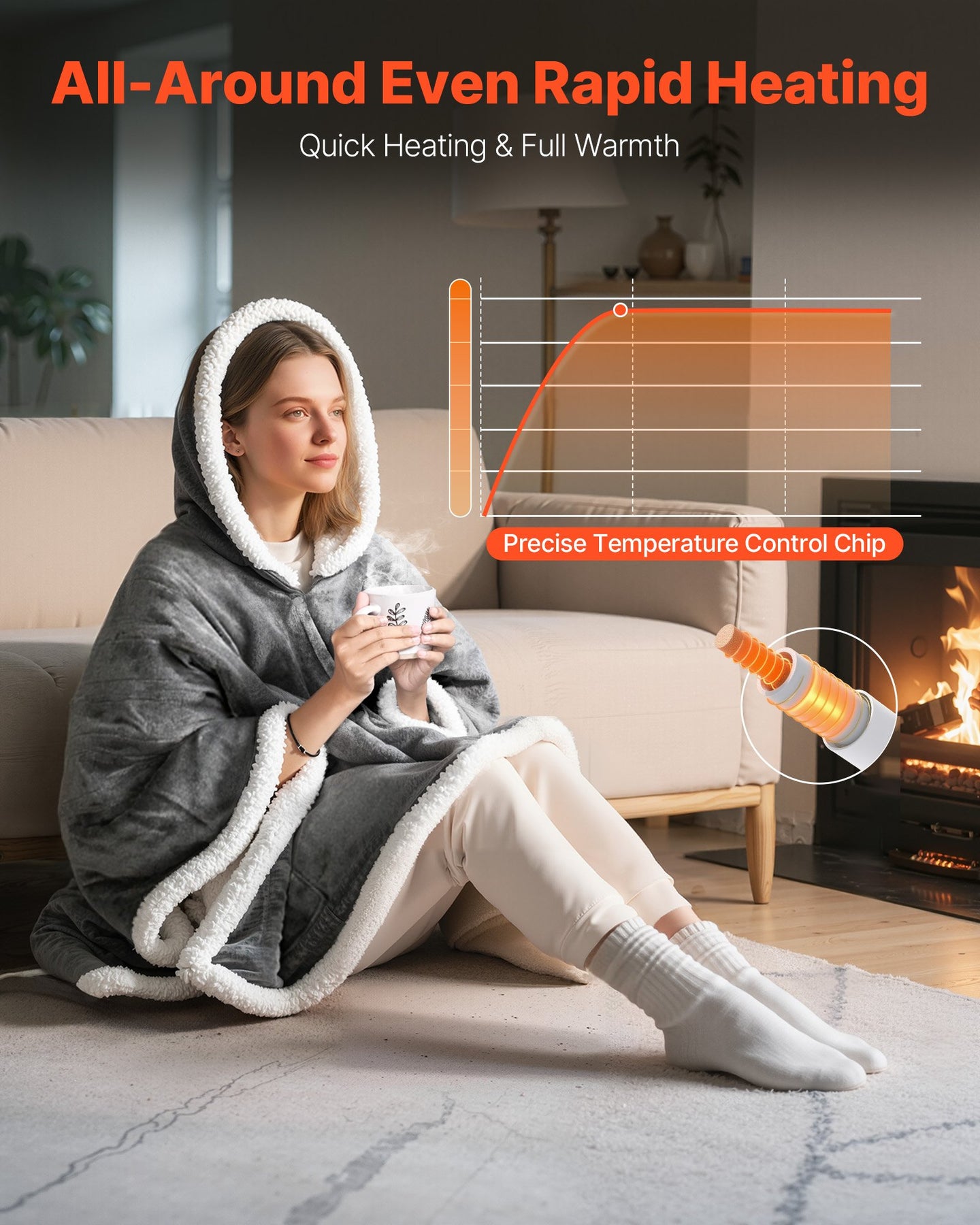Full-Body Even Heating: Our wearable heated blanket features all-around heating for uniform warmth without hot spots or long waits. Built-in precise temp control with multiple heat settings keeps warmth all night for cozy home, office, or travel use